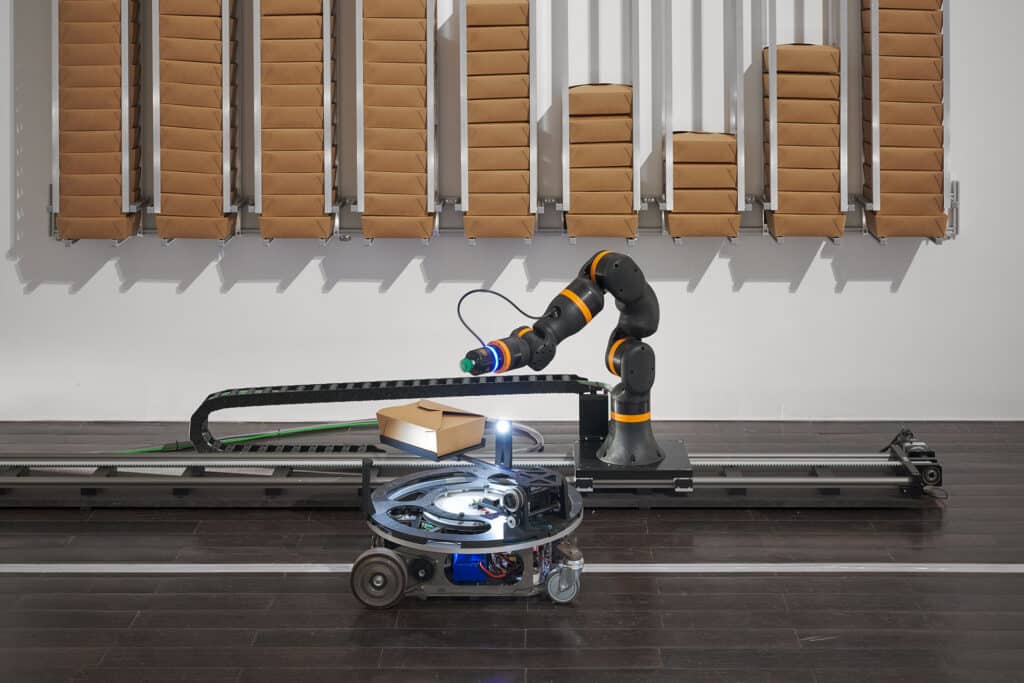 Credits: Shu Lea Cheang, HOME DELIVERY (2025), Ausstellungsansicht KI$$ KI$$, Ludwig Forum Aachen, 2025, Foto: Mareike Tocha.