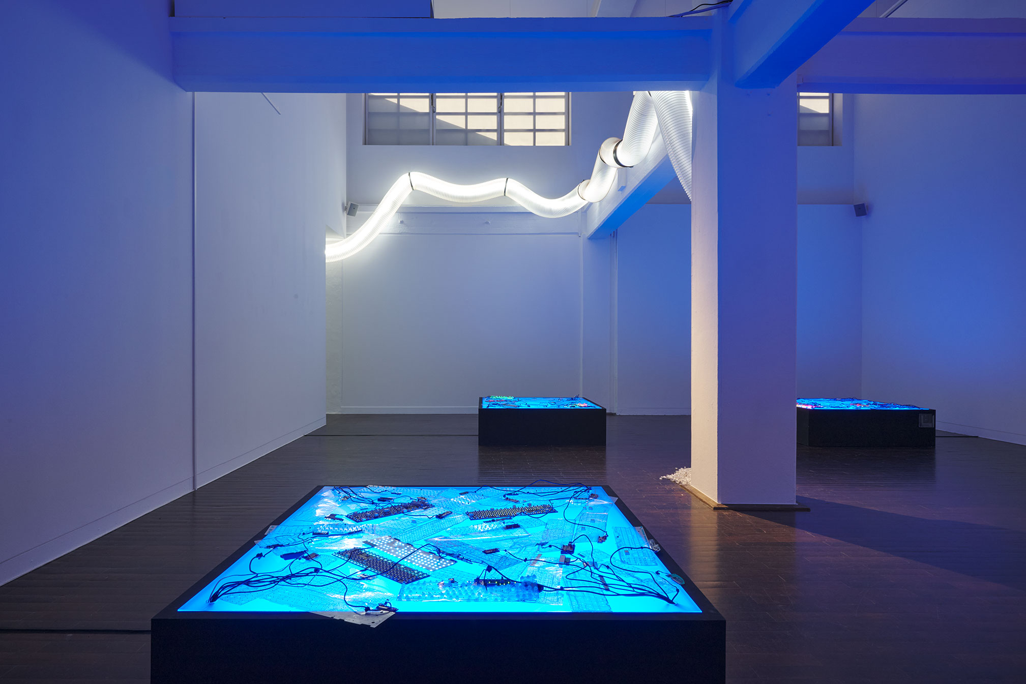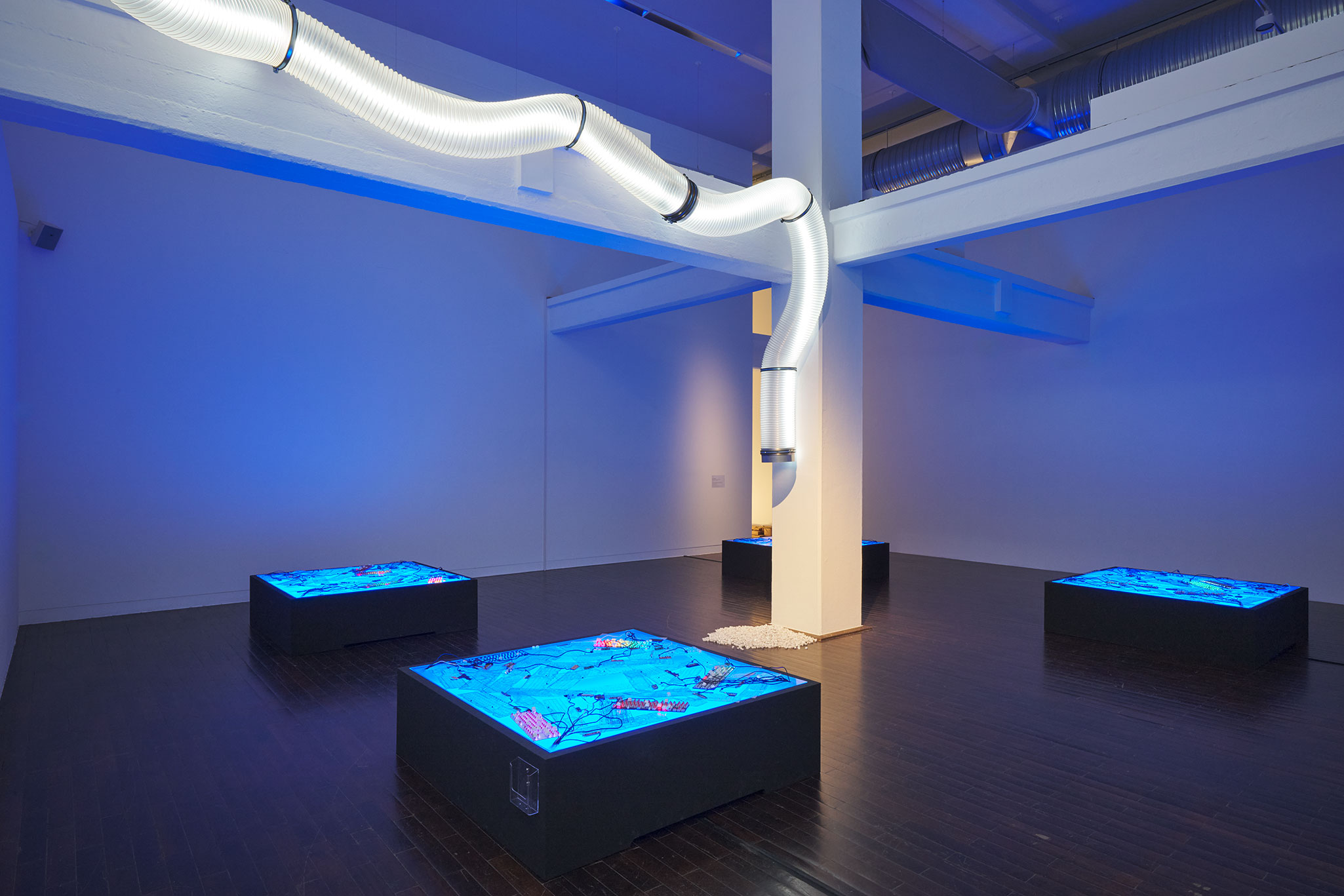 Ausgehend von ihrem wegweisenden Debütfilm Fresh Kill (1994) vereint Cheang im Ludwig Forum Arbeiten der vergangenen drei Jahrzehnte und stellt sie in einen aktualisierten Kontext. Im Zentrum ihrer Science-Fiction-Erzählungen steht dabei die Verflechtung natürlicher und digitaler Prozesse, die in vernetzten „Landschaften“ inszeniert werden. Außer Kontrolle geratene Roboter, ein Autowrack, das von Pilzkulturen besiedelt ist, ein KI-gesteuerter Avatar der Künstlerin sowie digitale und natürliche Kompostierung von Abfällen – jeder Raum der Ausstellung verwandelt sich in eine eigene Welt, die das Publikum zum Forschen und Spielen einlädt.
